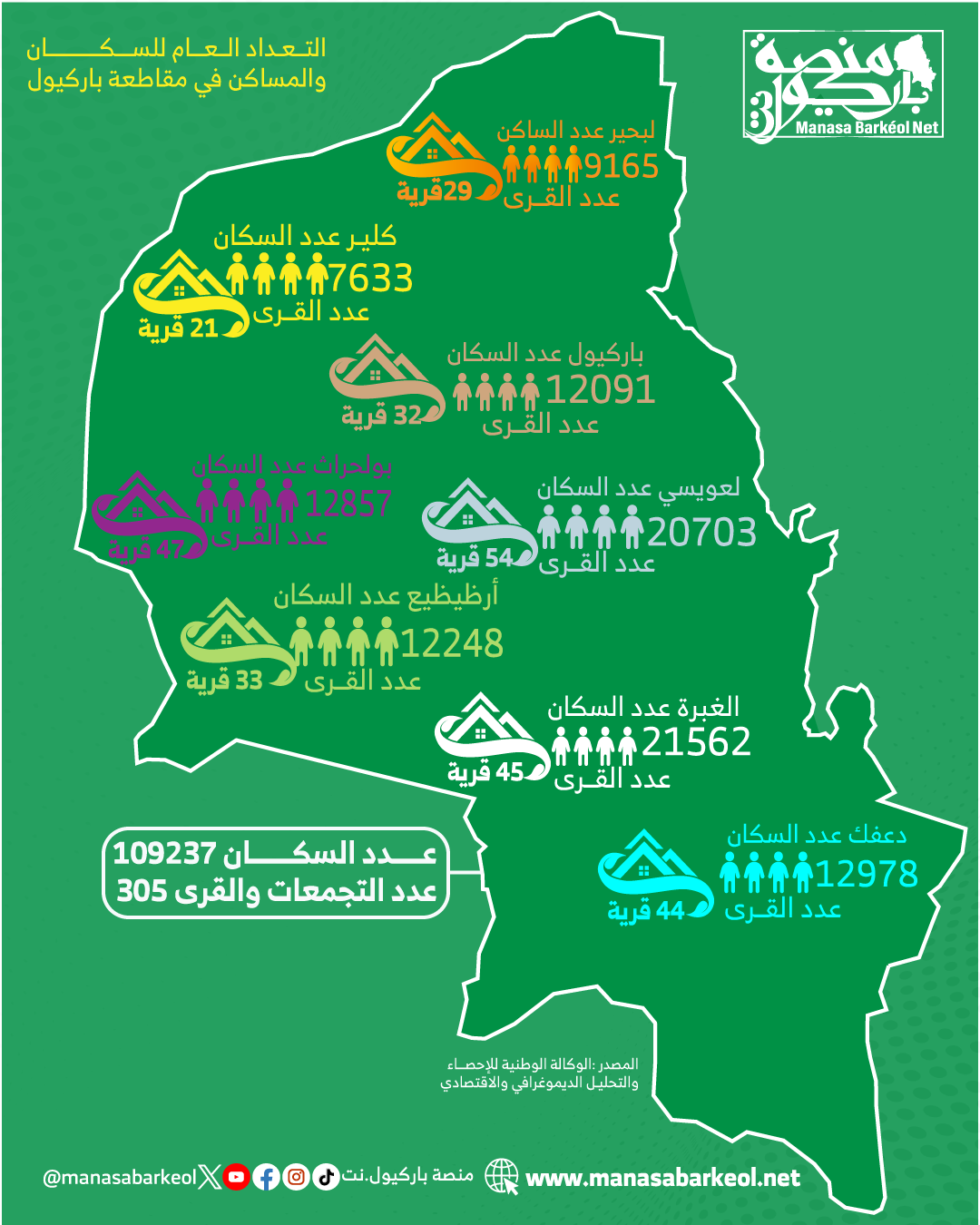 (منصة باركيول.نت) أظهر آخر إحصاء للتجمعات السكنية في موريتانيا الذي أصدرته الوكالة الوطنية للإحصاء الديموغرافي والاقتصادي لعام 2023 أن عدد التجمعات والقرى في مقاطعة باكيول وصل إلى 305 قرية وتجمع،