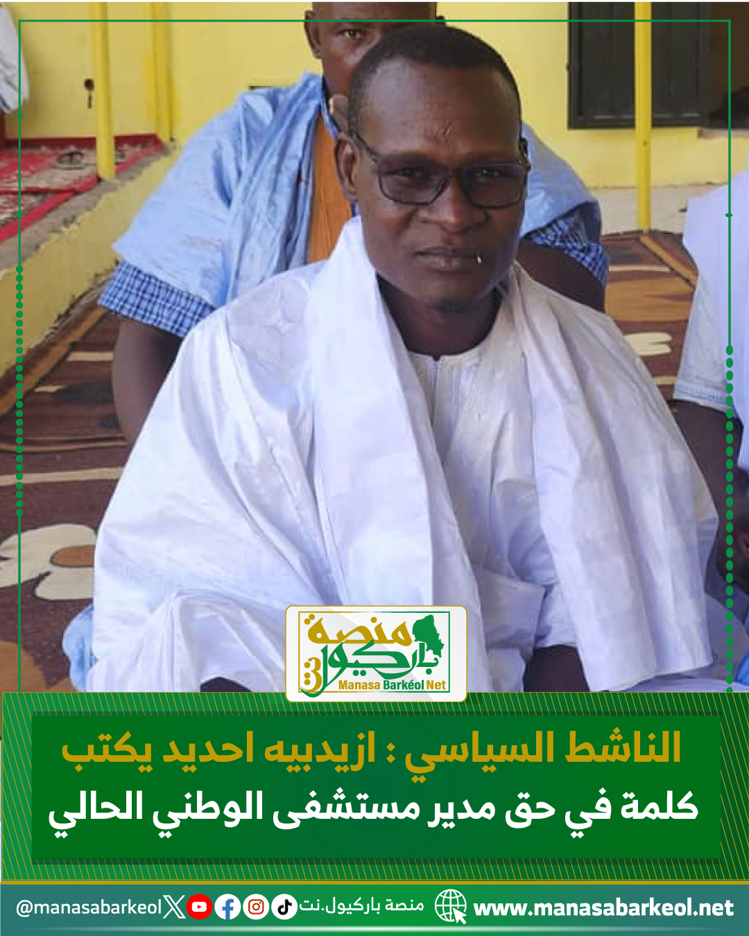 فنحن لا نعرف هذا الرجل ولا تربطنا به أي علاقة لكن الحق أحق أن يقال تسجيعا له ولأمثاله من الشباب على الاستمرار في العمل الذي ينفع موريتانيا ويمكث في أرضها الطاهرة، فمن عمل عملا عليه مطلبنا فهو منا ونحن منه، ومن يسعى في إسعاد المواطنين وحل مشاكلهم وتقريب الإدارة منهم فهو يسعي في نباء وطنه من الزاوية التي يتولاها فهو شخص يستحق علينا لإشادة، خصوصا إذا كان دكتور وشاب ليس له أبواق تلمعه.