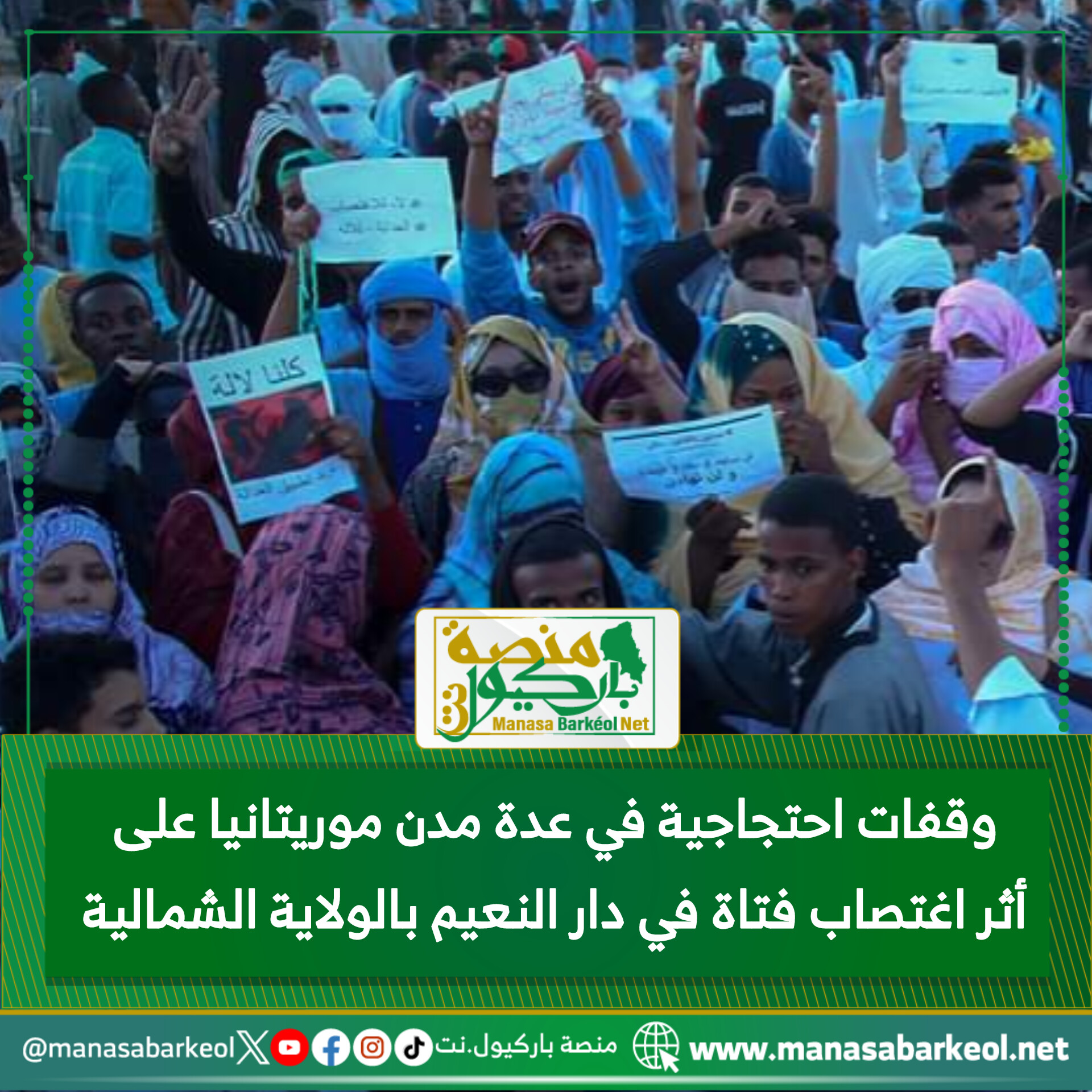 [منصة باركيول.نت] خرج اليوم مئات المواطنين الموريتانيين في العاصمة نواكشوط وعدة مدن من الوطن منه ازيرات وعدل بكرو وغيرهم، في وقفة احتجاجية حاشدة بشوارع ، تنديدا بجريمة الاعتداء التي تعرضت لها فتاة بالولاية الشمالية في العاصمة نواكشوط وتحديدا بدار النعيم ليل السبت الماضية.