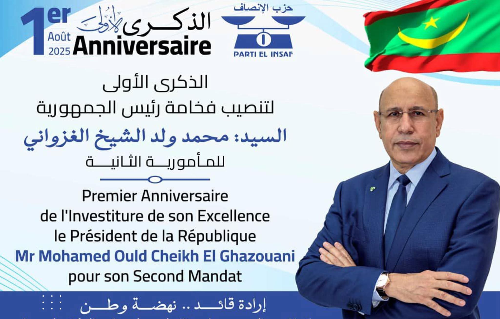 وتنظم التظاهرة الاحتفالية بمناسبة الذكرى الأولى لتنصيب رئيس الجمهورية، محمد ولد الشيخ الغزواني، لمأموريته الثانية.