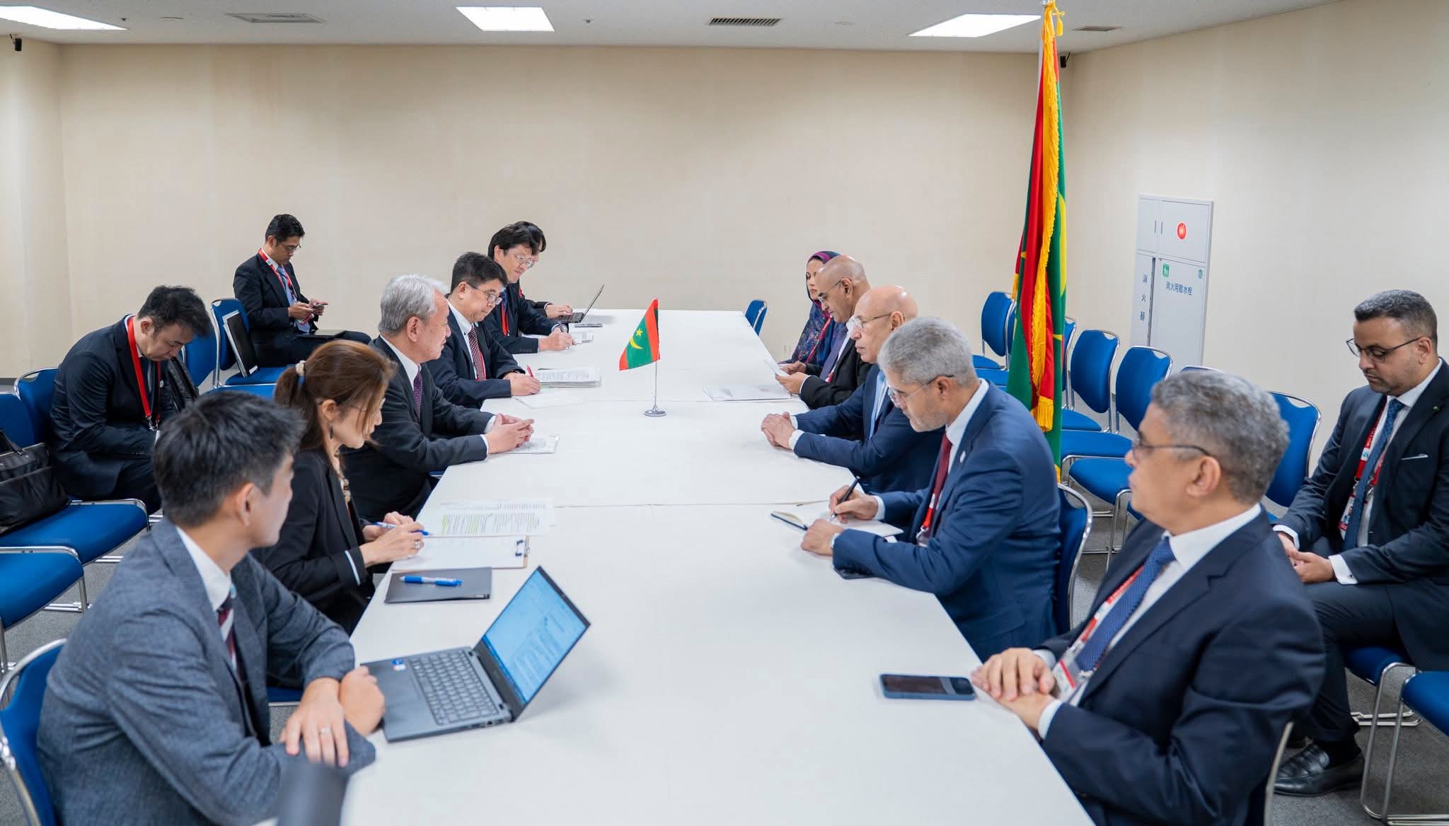 عقد فخامة رئيس الجمهورية، السيد محمد ولد الشيخ الغزواني، على هامش مشاركته في النسخة التاسعة من مؤتمر طوكيو الدولي للتنمية في إفريقيا (TICAD 9)، سلسلة لقاءات مع عدد من رؤساء ومديري كبريات الشركات اليابانية، من بينها SARAYA، HANWA KOGYO، Japan Tuna وTOYOTA TSUSHO، تم خلالها بحث سبل تعزيز الاستثمارات في القطاعات الواعدة بموريتانيا، وتطوير مجالات التعاون الفني.