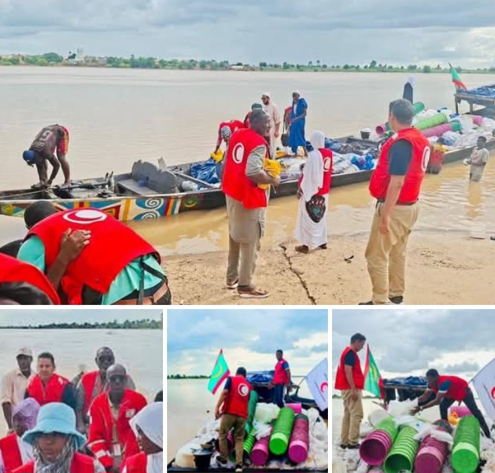 كيدي ماغه / الهلال الأحمر الموريتاني يوزع مساعدات إنسانية على بعض الأسر المتضررة من الفيضانات