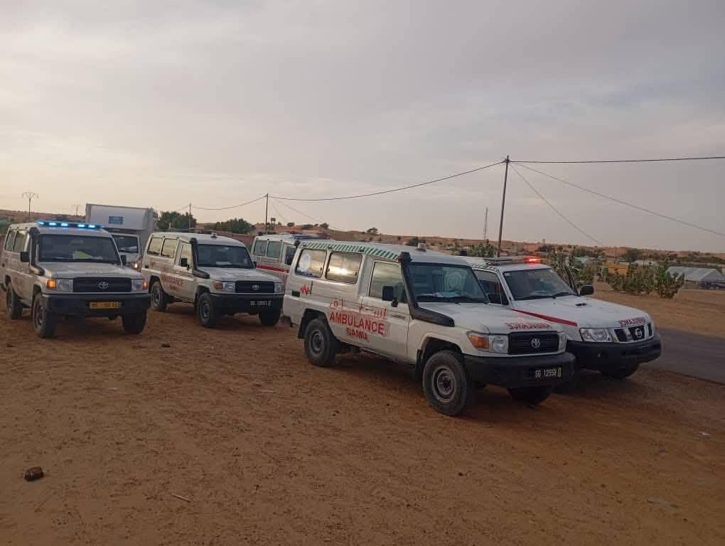 أوفدت وزارة الصحة عيادة متنقلة وتسع سيارات إسعاف مجهزة بكامل طواقمها الطبية، دعماً لقواعد السلامة الطرقية المنتشرة على طول طريق الأمل، وذلك بمناسبة زيارة فخامة رئيس الجمهورية محمد ولد الشيخ الغزواني لولاية الحوض الشرقي.