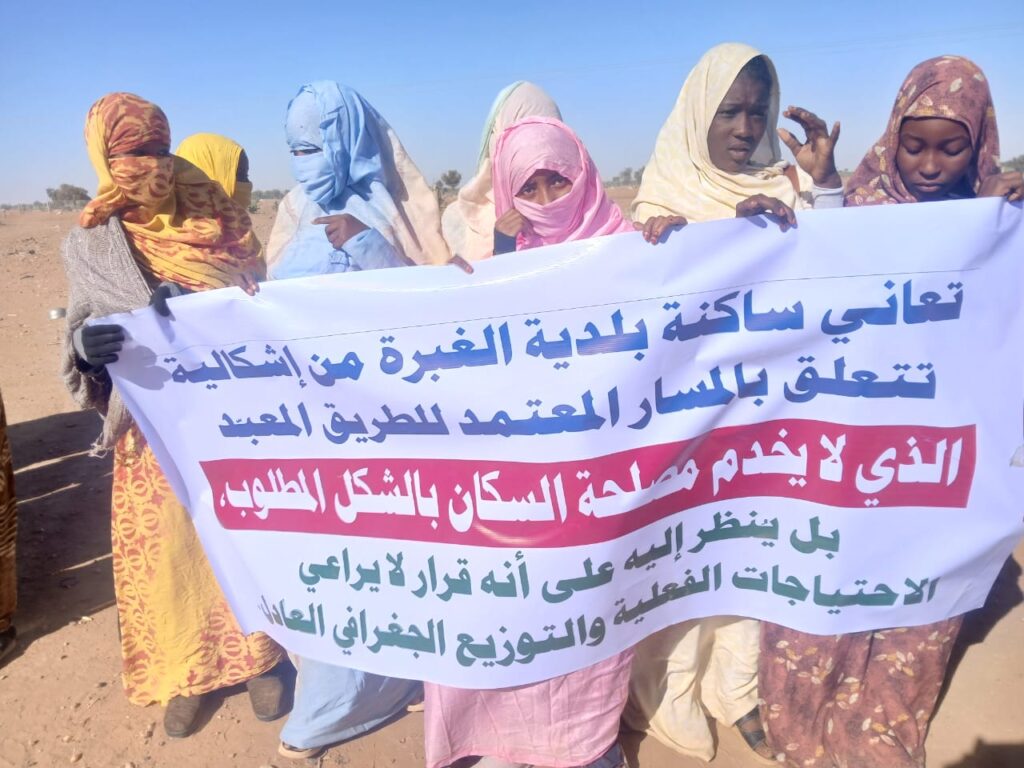 ورفع المحتجون لافتات تطالب بمراجعة مسار الطريق الجاري العمل فيه، مؤكدين أن ابتعاده عن مركز البلدية يقلل من جدواه التنموية ولا يستجيب للاحتياجات الفعلية لما يزيد على 23 ألف نسمة من سكان البلدية.