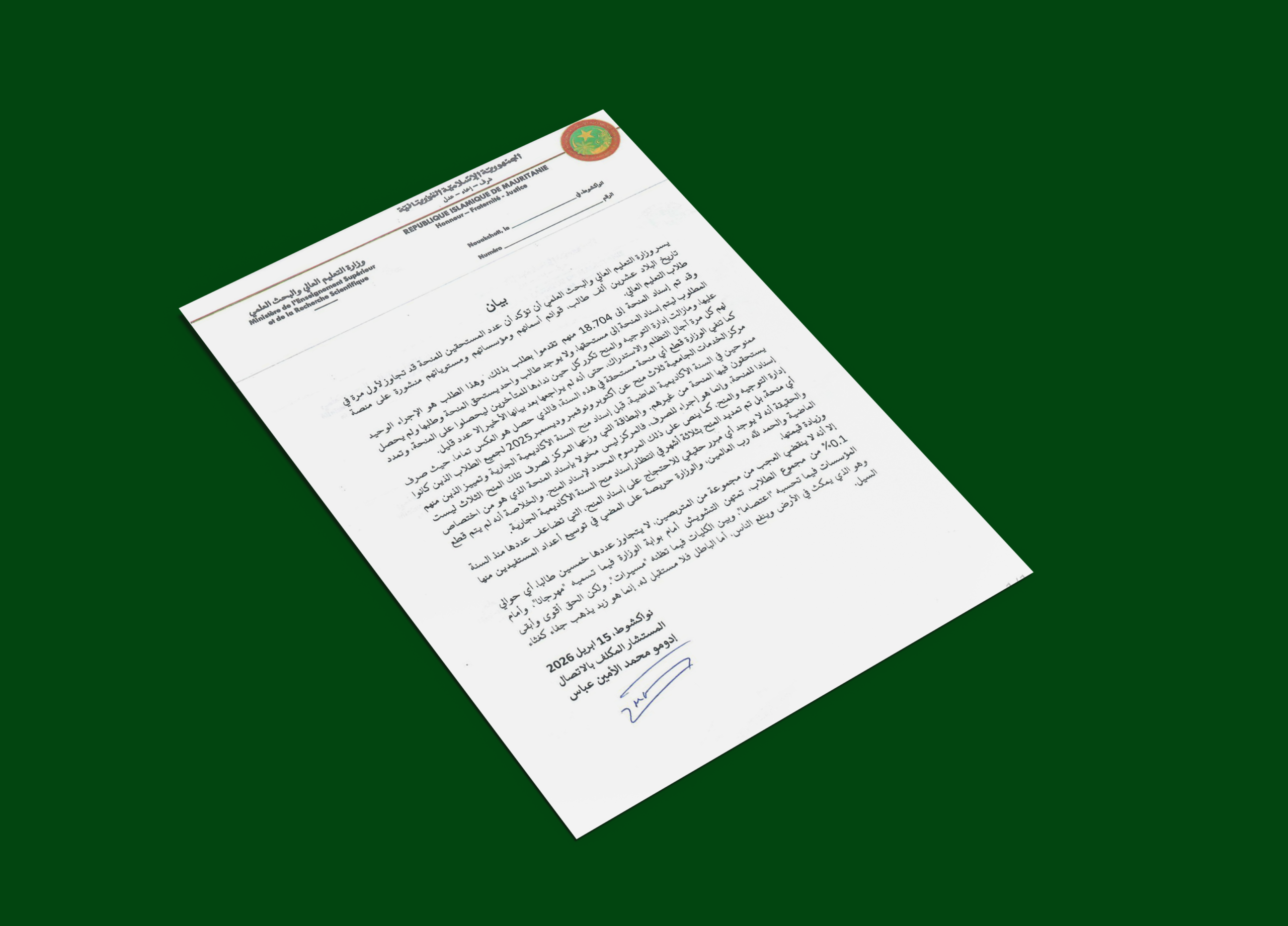 باركيول نت (نواكشوط) قالت وزارة التعليم العالي والبحث العلمي إن عدد الطلاب المستحقين للمنحة تجاوز، لأول مرة في تاريخ البلاد، حاجز 20 ألف طالب، مؤكدة أن قوائم الأسماء والمؤسسات والمستويات الدراسية نُشرت على منصة طلاب التعليم العالي.