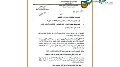 باركيول.نت (نواكشوط) أصدر الوزير الأول في “المختار ولد أجاي” تعميما رسميا موجها إلى عدد من القطاعات الحكومية، من ضمنها وزارة…